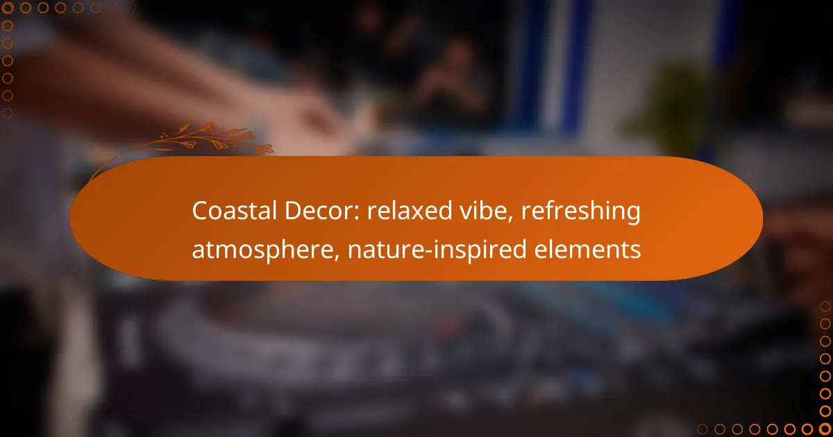 Coastal decor emphasizes a relaxed vibe, creating a refreshing atmosphere through nature-inspired elements. Key components include a beach-inspired color palette, natural textures, and light furnishings that evoke the serenity of coastal living.